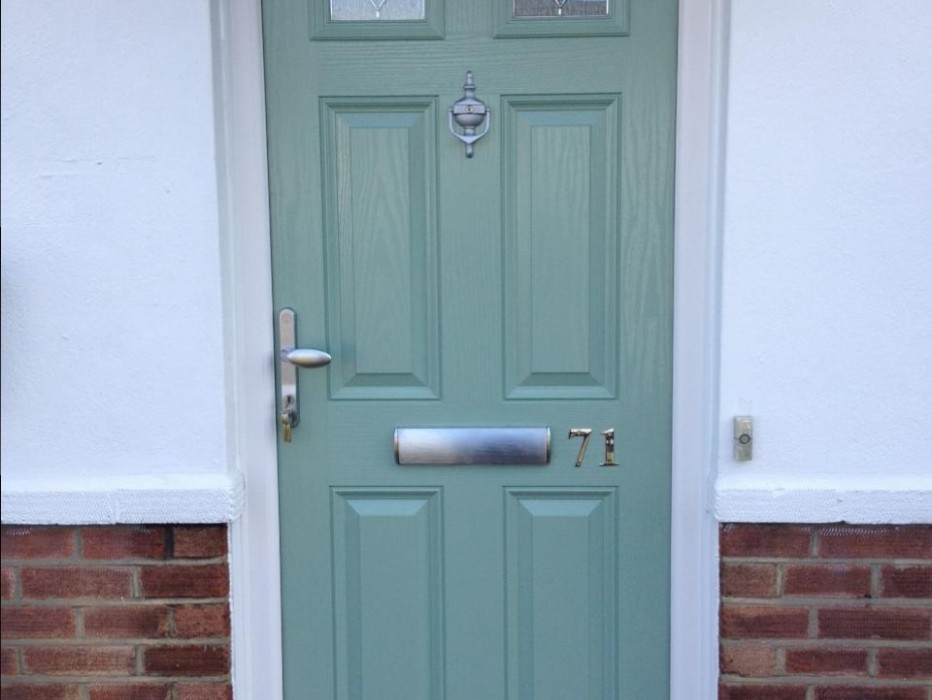 Chartwell Magnum 2 Composite door set in white upvc frame with feature glass, installed in Crayford.