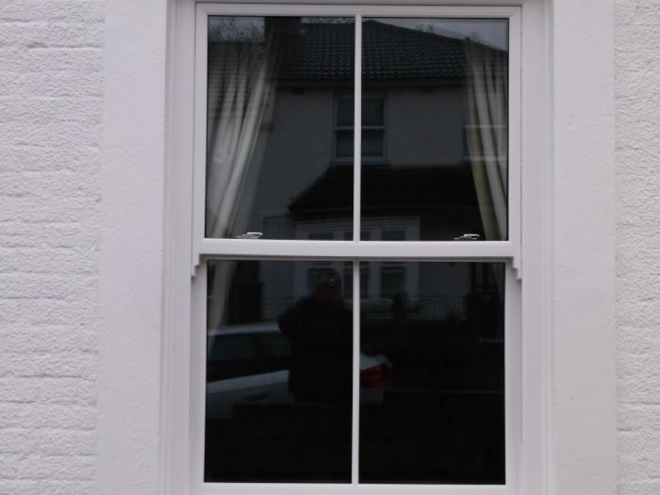 White VEKA Vertical Slider with Run Through Sash Horn recently installed in Crayford